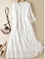 Naisten Midimekko Paitamekko Kaftaanimekko Valkoinen mekko Puuvillaiset pellavamekot Perus Moderni Päivittäin Viikonloppu Loose Fit Tavallinen 3/4 hiha Paitapuserokaula-aukko Musta Valkoinen