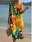 Naisten Midimekko Rento mekko Painatus mekko Muoti Moderni Päivittäin Hiekkaranta Viikonloppu Normaali Kuvitettu 3/4 hiha Tiukka pyöreä kaula-aukko Keltainen Oranssi Kesä Kevät Syksy