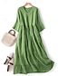 Naisten maksimekko pellavaa ja puuvillaa, A-linjainen mekko, kesämekko, rento, päivittäinen väljä istuvuus, yksivärinen, 3/4-hiha, v-pääntie, valkoinen, vihreä, kesä kevät, syksy