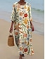 Naisten maksi-mekko pellavan kaltainen hengittävä kevyt muunnelma mekko kesämekko lomarento boho jokapäiväinen ranta loma löysä istuvuus graafinen geometrinen 3/4 pituus hiha pyöreä kaula-aukko
