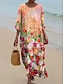 Naisten Maksimekko Kesämekko A linjainen mekko Loma Vapaa-aika Boheemi Hiekkaranta Loose Fit Kukka Kuvitettu 3/4 hiha V kaula-aukko Punastuvan vaaleanpunainen Oranssi Ruskea Apila Kesä Kevät