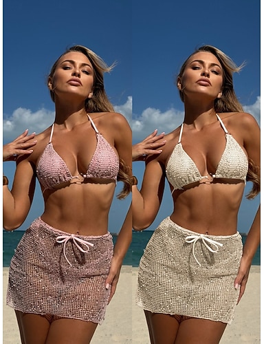 Naisten Uima-asut Bikinit Kolme kappaletta Hame Uimapuku Avoin selkä Ohut Loma Ranta-asut Solmuvärjätty Riipuskaula Hihaton Uimapuvut