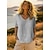 Naisten Paita 100% Cotton Tavallinen Päivittäin Tyylikäs Perus Lyhythihainen V kaula-aukko Tavalliset topit Päivittäin Työ Pyhäpäivä Sininen Valkoinen Harmaa Kesä