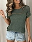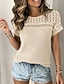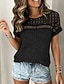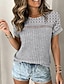 Naisten Pusero Pitsi Yhtenäinen väri Tyylikäs Klassinen Vapaa-aika Lyhythihainen Tiukka pyöreä kaula-aukko Tavalliset topit Päivittäin Sininen Musta Apila Beesi Harmaa Kesä Kevät