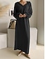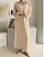Naisille pellavan kaltaiset keinokuitupellavamekot maksimekko siirtomekko rento arkipäivä löysä istuvuus yksivärinen pitkähihaisuus huppu musta vaaleanruskea harmaa kevät syksy talvi