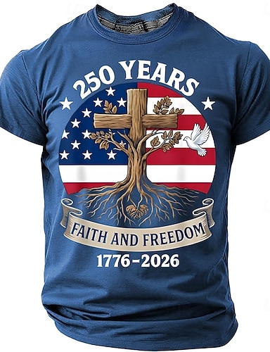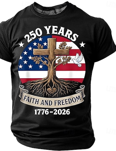 4. heinäkuuta 2026 250. muistopäivä Miesten 3D-tulostus Yhdysvaltain lippu pyöreäkauluksinen lyhythihainen T-paita päivittäinen katu