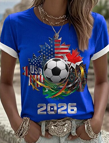 Amerikan itsenäisyyspäivä Naisten T-paita Painettu Kuvitettu Amerikan lippu Muoti Tyylikäs Klassinen Lyhythihainen Tiukka pyöreä kaula-aukko Tavalliset topit Kausaliteetti Päivittäin Sininen Musta