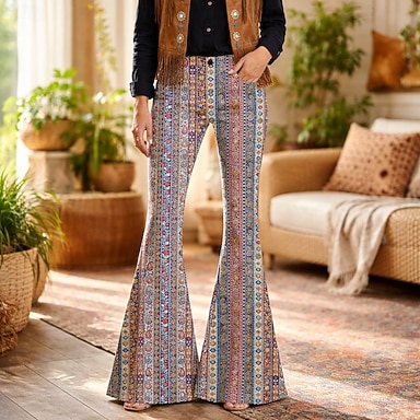 Retro / vintage Boheemi 1970 luku Housut Bell Bottom Housut Hippi Disko Korkea vyötärö Boheemi Etninen Naamiaispuku Naisten Halloween Karnevaali musiikkifestivaali Retro-teemaiset juhlat Aikuisten