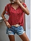 Naisten Paita Pusero Tilkkutäkki Painettu Kukka Kuvitettu Vintage Tyylikäs Vapaa-aika Lyhythihainen V kaula-aukko Pitkät topit Päivittäin Pyhäpäivä Bile Sininen Rubiini Vaalean ruskea Beesi Kesä Kevät