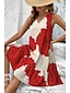 Naisten Mini mekko Kesämekko A linjainen mekko Vapaa-aika Päivittäin Pyhäpäivä Normaali Kukka Kuvitettu Hihaton V kaula-aukko Rubiini Kesä Kevät