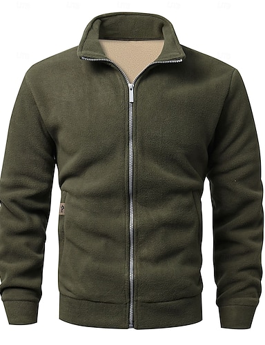 Miesten Talvitakki Fleecetakki Rento takki ulko- Kausaliteetti Pidä lämpimänä Tasku Täysi vetoketju Syksy Talvi Yhtenäinen väri Katutyyli Päivittäin Stand-kaula-aukko Normaali Tumman harmaa Musta