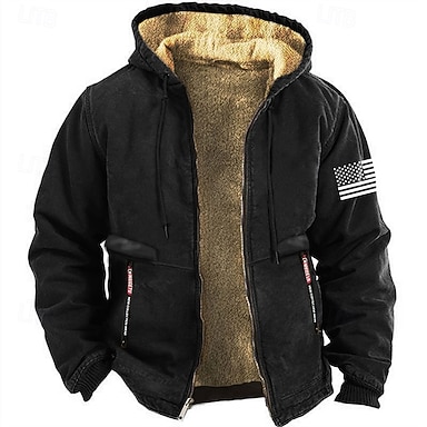Miesten Risti Amerikan lippu Huppari Rento huppari College Muoti Päivittäin Loma Vapaa-aika Vintage retro Hupullinen Loma Katuvaatteet Festivaali Sininen Musta Valkoinen Rubiini Apila Tulostus Syksy