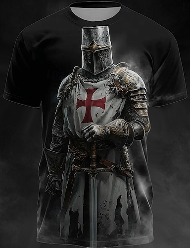 Miesten ristiretkeläisten temppeliherrain keskiaikainen haarniska punainen risti vintage goottilainen sankari T-paita all over print säännöllinen istuvuus rento päivittäinen katumuoti muotimerkin
