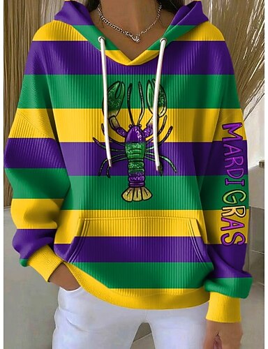Naisten Pullover-huppari Kuvitettu Raidoitettu Vapaa-aika Pitkähihainen Hupullinen Tavalliset topit Kausaliteetti Arkikäyttö Urheilu Purppura Apila Kevät Syksy