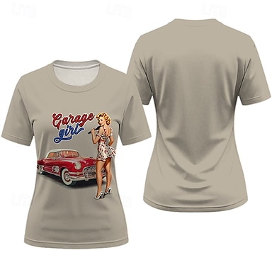T-paita Teepaita Retro juliste Retro tyttö 1950-luku Retro / vintage T-paita Kuvitettu varten Miesten Aikuisten 3D-tulostus varten Naamiaiset Päivittäin Loma Juhla