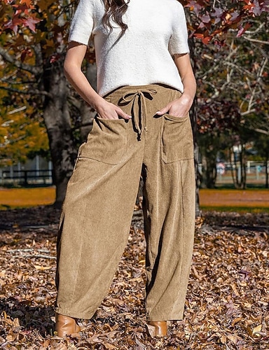 Naisten Housut Katutyyli Vapaa-aika Täyspitkä Luonnollinen Tavallinen Tasku Joustava vyötärö Mukava Katu Arki-asut Masentavan vihreä Vaalea taivaansininen Harmaa Musta Kesä Normaali