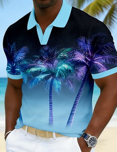Miesten Palmu Havaijilaiset poolopaidat Lyhythihainen Poolopaidat V kaula-aukko Vapaa-aika Lomakeskus Urheilu- ja treenivaatteet Arki-asut Lomavaatteet 3D-tulostus Kevät kesä Sininen Purppura Apila