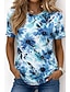 Naisten T-paita Painettu Kukka Kuvitettu Kasvit Vintage Tyylikäs Vapaa-aika Lyhythihainen V kaula-aukko Tavalliset topit Päivittäin Viikonloppu Sininen Keltainen Viini Purppura Oranssi Kesä Kevät