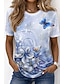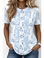 Naisten T-paita Painettu Kukka Kuvitettu Vintage Tyylikäs Klassinen Lyhythihainen Tiukka pyöreä kaula-aukko Pyöreä kaula-aukko Tavalliset topit Kausaliteetti Päivittäin Sininen Valkoinen