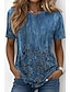 Naisten T-paita Painettu Ombre Kukka Kuvitettu Tyylikäs Klassinen Vapaa-aika Lyhythihainen Tiukka pyöreä kaula-aukko Pyöreä kaula-aukko Tavalliset topit Kausaliteetti Päivittäin Sininen Vaalea