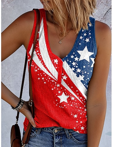 Amerikan itsenäisyyspäivä Naisten Hihaton Painettu Kuvitettu Lippu Vintage Trooppinen Tyylikäs Hihaton V kaula-aukko Tavalliset topit Päivittäin Sininen Valkoinen Rubiini Khaki Kesä Kevät
