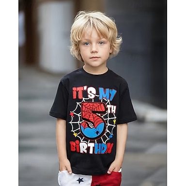 100% puuvilla Lapset Poikien Musta Kuvitettu hämähäkinverkko On minun 5. syntymäpäiväni T-paita Pusero Tiukka pyöreä kaula-aukko Lyhythihainen Päivittäin ulko- Syntymäpäivä Muoti Katutyyli