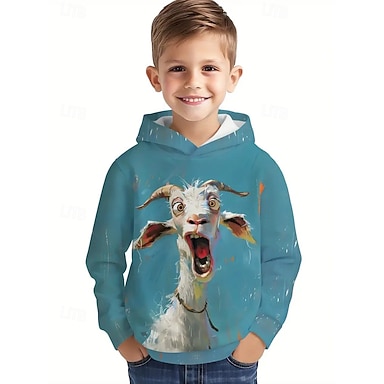 Poikien 3D Kuvitettu Eläin Lammas Huppari Pullover Pitkähihainen 3D-tulostus Kevät Syksy Urheilu Muoti Katutyyli Lapset 4-12 vuotta Hupullinen ulko- Kausaliteetti Päivittäin Normaali