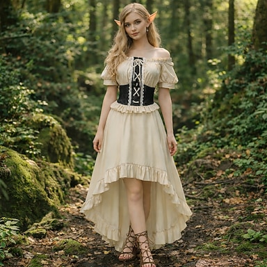 Keskiaika Renessanssi mieltymys Lyhyt Mekot Vyötärövyö Polvisukat Pitkähihainen Jousimies Solmittava Naamiaispuku Naisten Fantasia Naamiaiset Juhla Renessanssin messut LARP Aikuisten Leninki Sukat