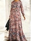 Naisten skeleton maxi mekko sheath mekko A-linjainen mekko rento boheemi häävieras ranta tavallinen istuvuus kukka graafinen pitkät hihat pyöreä pääntie boatin pääntie sininen violetti oranssi vihreä