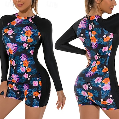 Naisten Ihottumissuoja Uimapuku Boyleg Kukka Sulkea jnk vetoketju Irrotettava toppaus Etuvetoketju UV-aurinkosuojaus UPF50+ Erikoiskevyt(UL) Pitkähihainen Uima-asut Rash guard -suojapaita