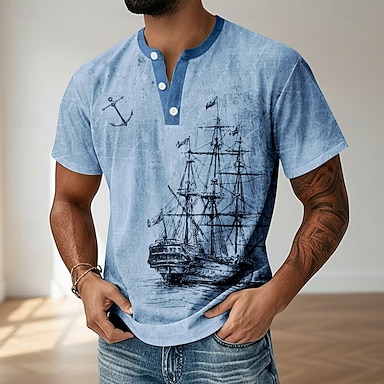 Miesten Kuvitettu Auto Henley-paita Lyhythihainen 3D-tulostus Muoti Suunnittelija Mukava Päivittäin ulko- Kesä Sininen Rubiini Taivaan sininen Purppura Oranssi Henley Henley T-paita
