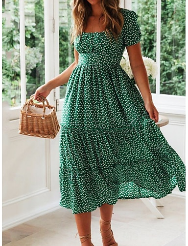 Tyttöjen 3D Kukka Kuvitettu Mekko Lyhythihainen 3D-tulostus Kesä Kevät Päivittäin Loma Juhla söpö tyyli Perus Vapaa-aika Lapset 4-12 vuotta Rento mekko A linjainen mekko Polvipituinen Normaali