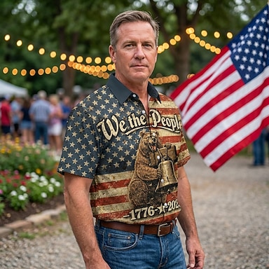 Pusero / hame Geometrinen Amerikan lippu Itsenäisyyspäivä Retro / vintage 1970 luku Lyhyet hihat varten Miesten Aikuisten varten 4. heinäkuuta Juhla Itsenäisyyspäivä