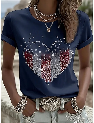 Amerikan itsenäisyyspäivä Naisten T-paita Painettu Kuvitettu Lippu Tyylikäs Klassinen Vapaa-aika Lyhythihainen Tiukka pyöreä kaula-aukko Pyöreä kaula-aukko Tavalliset topit Päivittäin Sininen Rubiini