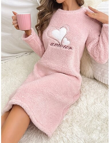 Naisten Yöpaita Vapaa-aika Mukavuus Kirjain Kirjailtu T-paita Koti Päivittäin Pitkähihainen Tiukka pyöreä kaula-aukko Punastuvan vaaleanpunainen Beesi Syksy Talvi Normaali