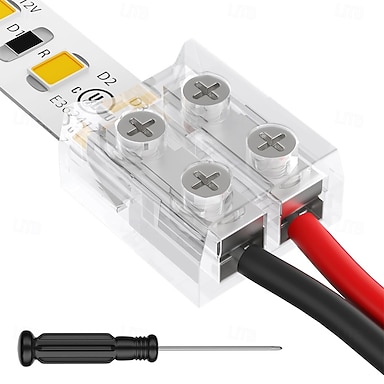 LED-liitin 2-nastainen 10 mm:n juottamaton led-nauhavalojen liitin läpinäkyvä led-nauhavalojen liittimet ruuvimeisselillä nauha-johto 12 V 24 V yksivärisille LED-valonauhoille, 12 kpl