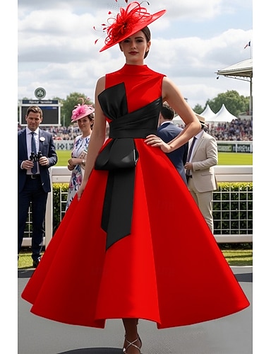 Tanssiaismekko Nilkkapituinen Tanssiaismekot Iltapuku Ball Gown Muodollinen mekko Tyylikäs 1950-luku Väripaletti Hihaton poolokaulus Tanssiaiset Häävieras Satiini kanssa Rusetti(rusetit)