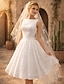 A-linja Polven yli Häämekot Morsiuspuvut Hääpuku Vintage 1940/1950-luku Valkoiset pikkumekot 3/4 hiha Illuusio-kaula valmistuminen Syntymäpäivä Pitsi Tylli kanssa Applikaatiot