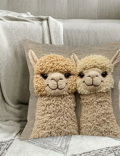 Söpö aasi-tyynynpäällinen 2d-litteällä painatuksella ihastuttava sarjakuva suutelukuvio pehmeä beige tausta koristeellinen tyynynpäällinen sohvan kodin sisustukseen