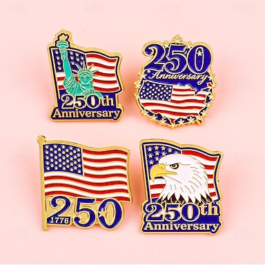 4 kpl Yhdysvaltain 250-vuotisjuhlan emalipinkkejä, isänmaallisia metallimerkkejä, sarjakuvamainen Yhdysvaltain lippu, vapaudenpatsas &kaljupäämerikotka, luovia keräilyesineitä vaatteille &lahjat