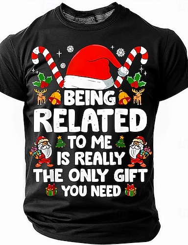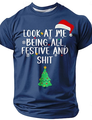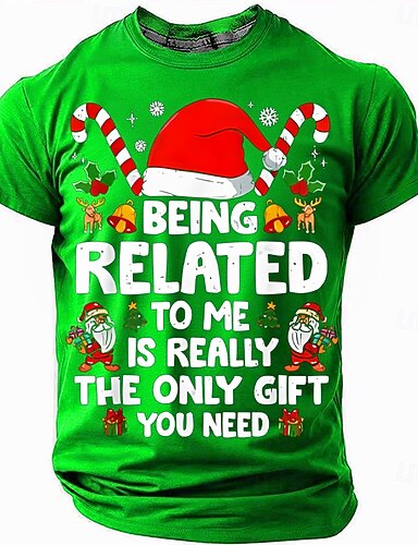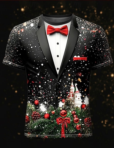 Christmas Miesten kirjeprintti T-paita Lyhythihainen T-paita 3D-tulostus Tiukka pyöreä kaula-aukko Paita Muoti Urheilu- ja treenivaatteet Katu Urheilu ja ulkoilu Päivittäin Musta Rubiini Apila Kes