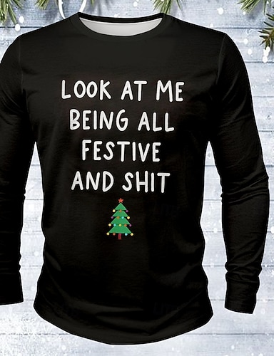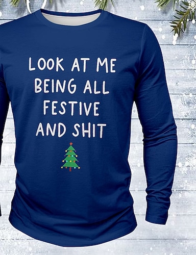 Christmas Miesten Joulukuusi Hauska slangi T-paita Pitkähihainen T-paita 3D-tulostus Tiukka pyöreä kaula-aukko Paita Loma Suunnittelija Kausaliteetti Katu Sininen Musta Valkoinen Kesä Kevät Syksy