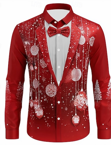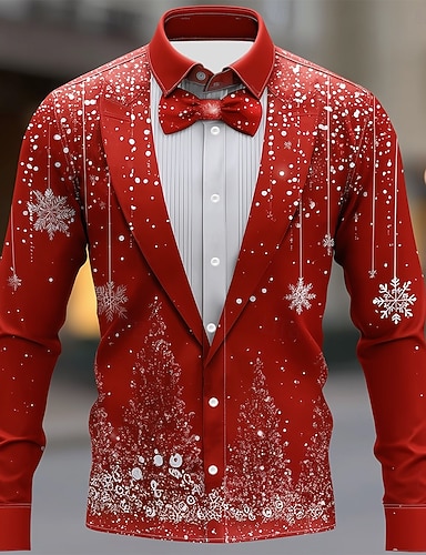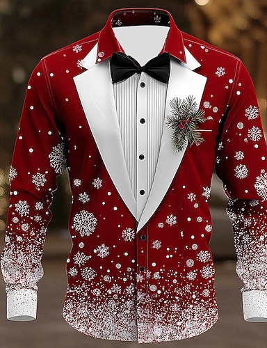 Christmas Miesten Lumihiutale Jouluasuste Pukukuvioinen smokkipaita Paita Button Up paita Pitkähihainen Hauska ulko- Pyhäpäivä Kevät Syksy Sänkyjen avaus 3D-tulostus kauluspaidat Punainen 1 Rubiini