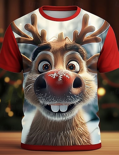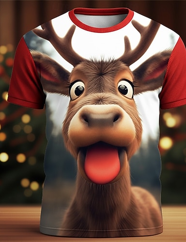 Christmas Miesten Joulupukki Hirvi T-paita Lyhythihainen T-paita 3D-tulostus Tiukka pyöreä kaula-aukko Paita Päivittäin Suunnittelija Taiteellinen Loma Juhla Katu Valkoinen Rubiini Punainen 2 Kaikki