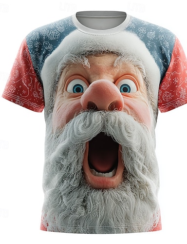 Christmas Miesten Joulupukki 3D sarjakuva T-paita Lyhythihainen T-paita 3D-tulostus Tiukka pyöreä kaula-aukko Paita Päivittäin Suunnittelija Taiteellinen Loma Juhla Katu Valkoinen 1 Punainen 3 Rubiini