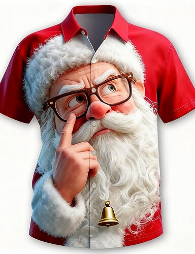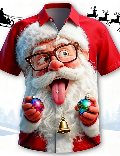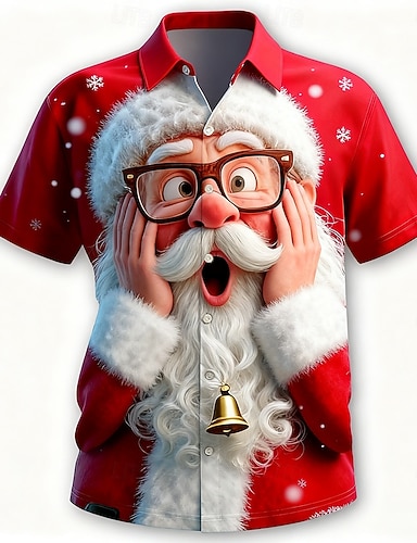 Christmas Miesten Joulupukki Ihmisen kasvot Neonhehku Paita Button Up paita Pitkähihainen Hauska ulko- Pyhäpäivä Kevät Syksy Sänkyjen avaus 3D-tulostus kauluspaidat Punainen 1 Punainen 4 Punainen 3