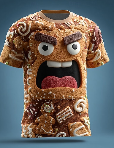 Christmas Miesten 3D sarjakuva Piparkakut miehet T-paita Lyhythihainen T-paita 3D-tulostus Tiukka pyöreä kaula-aukko Paita Päivittäin Suunnittelija Taiteellinen Loma Juhla Katu Ruskea Ruskea 2 Ruskea