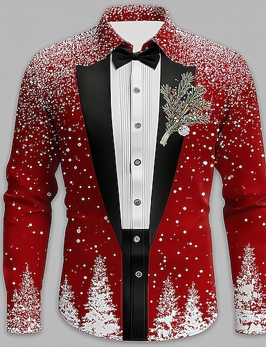 Christmas Miesten Joulukuusi Jouluasuste Pukukuvioinen smokkipaita Paita Button Up paita Pitkähihainen Hauska ulko- Pyhäpäivä Kevät Syksy Sänkyjen avaus 3D-tulostus kauluspaidat Punainen 1 Rubiini