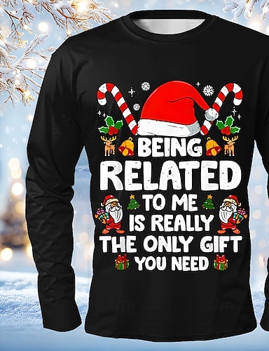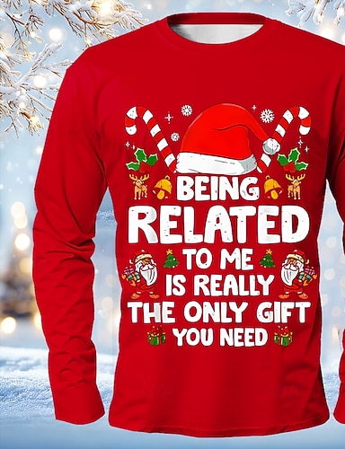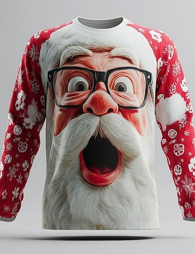 Christmas Miesten Joulupukki Hauska T-paita Pitkähihainen T-paita 3D-tulostus Tiukka pyöreä kaula-aukko Paita Muoti Perus 3D Kausaliteetti Päivittäin Katu Punainen 3 Rubiini Punainen 2 Kesä Kevät