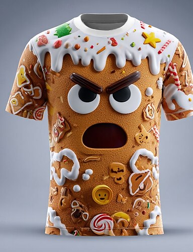 Christmas Miesten 3D Piparkakut miehet T-paita Lyhythihainen T-paita 3D-tulostus Tiukka pyöreä kaula-aukko Paita Päivittäin Suunnittelija Taiteellinen Loma Juhla Katu Ruskea Ruskea 2 Ruskea 4 Kaikki
